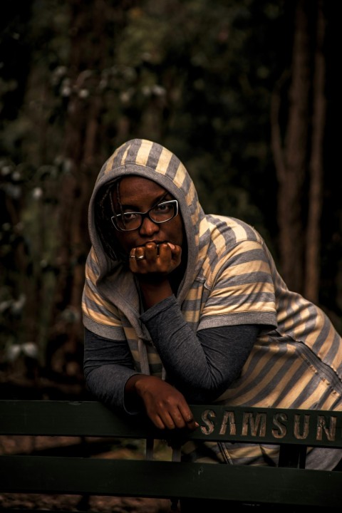 woman in gray long sleeve shirt sitting on bench