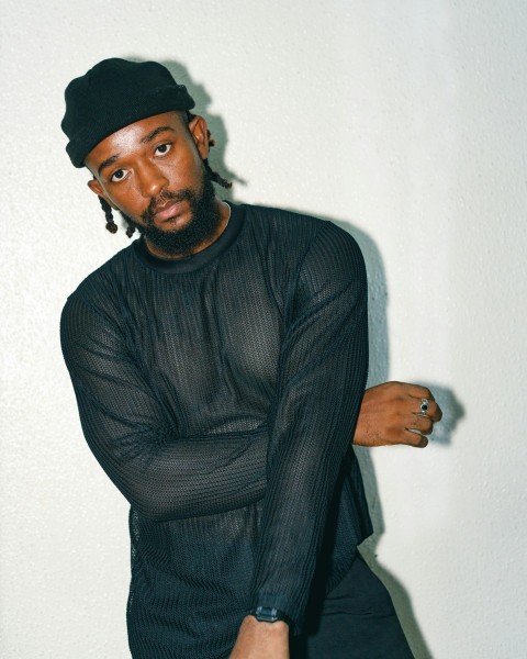 a man in a black shirt and a black hat