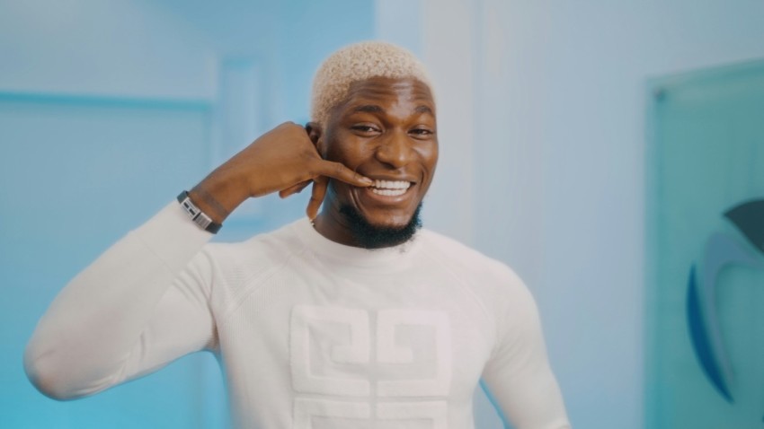 a man in a white shirt talking on a cell phone