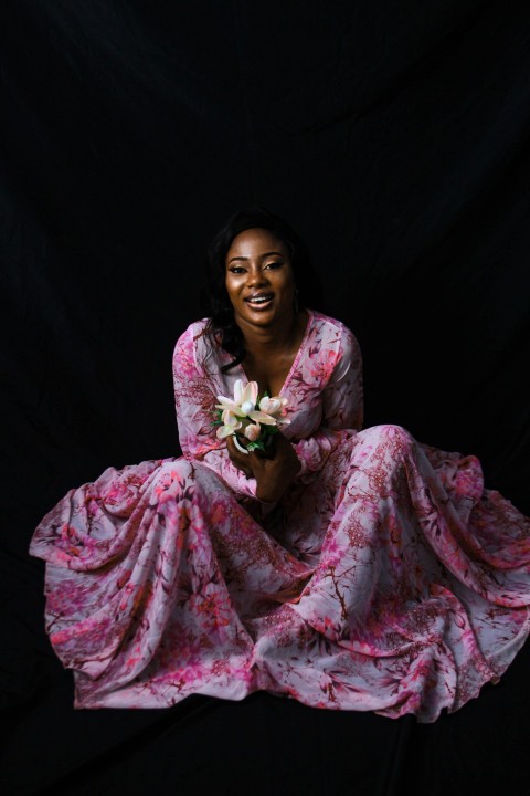 woman in pink and white floral hijab