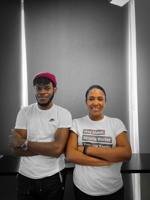 a couple of people standing next to each other