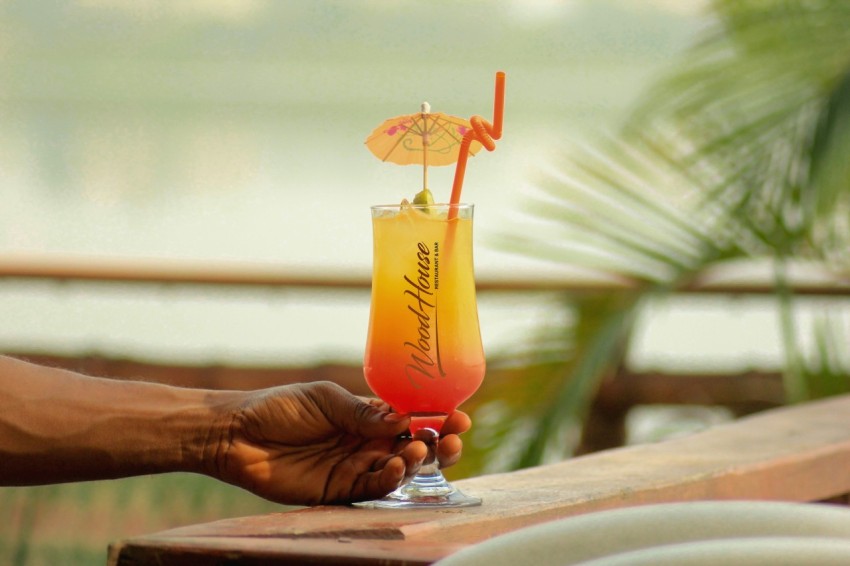person holding clear drinking glass with yellow liquid