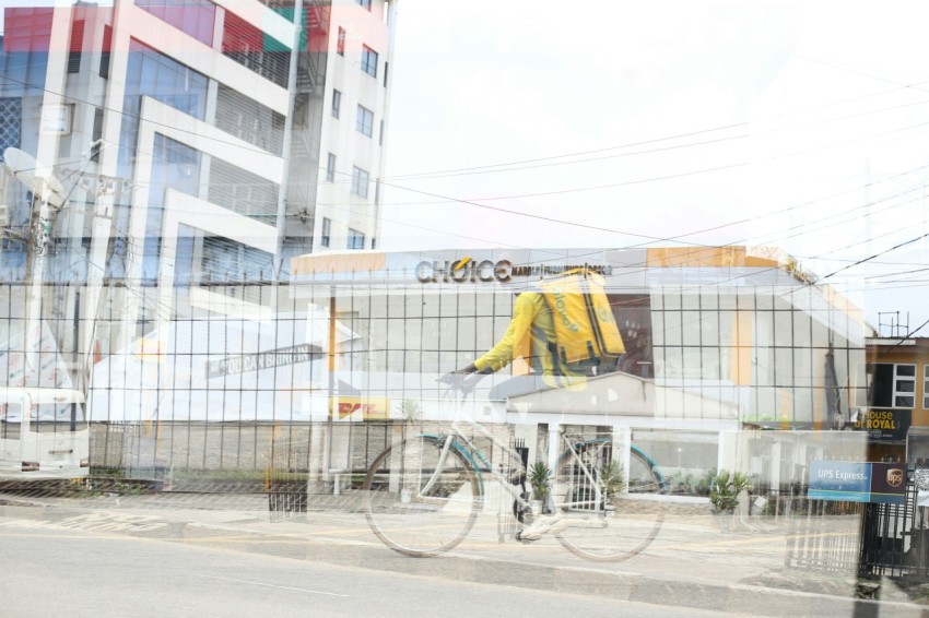 man in brown and white plaid dress shirt and yellow hard hat holding black and orange 0