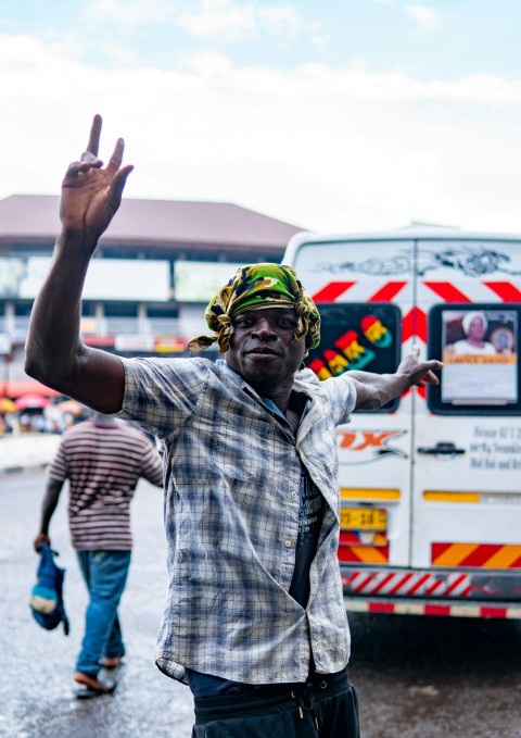 woman in gray long sleeve shirt and orange and black striped skirt standing on gray concrete