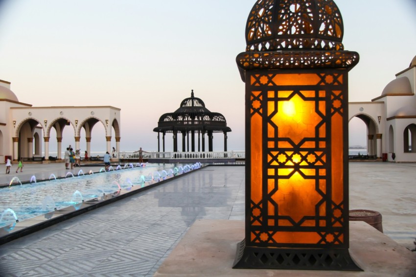brown and black lantern lamp on gray concrete floor