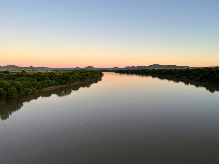 a large body of water surrounded by trees vW