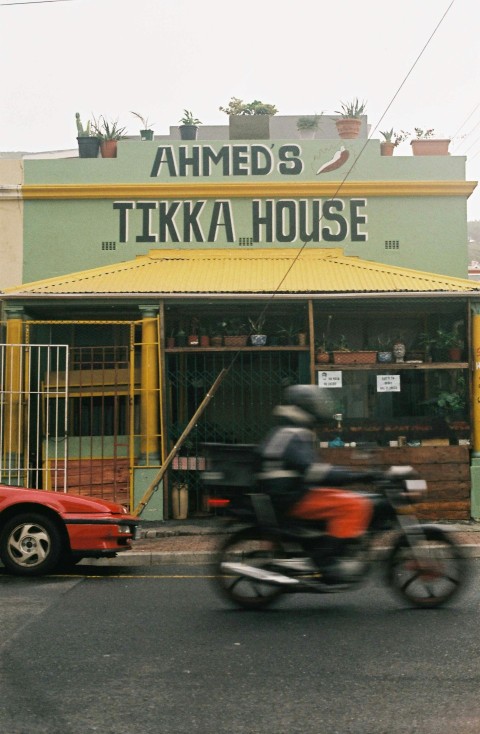man in black jacket riding motorcycle in front of red car during daytime h6