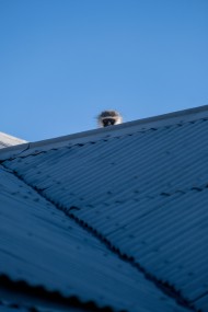 a bird is sitting on top of a roof