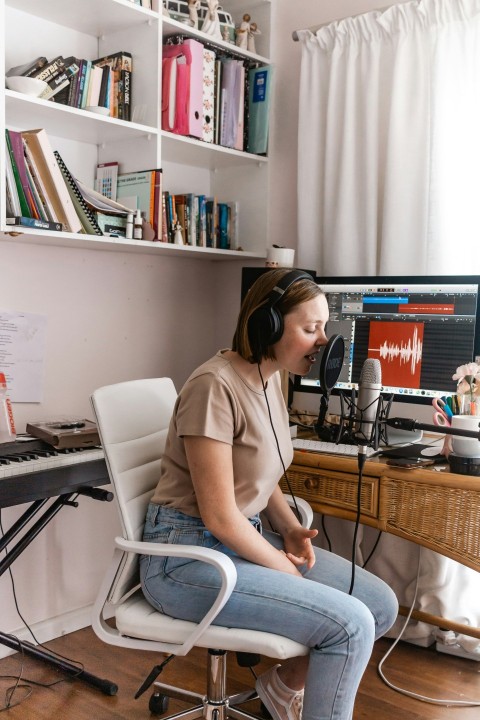 woman in white shirt sitting on white chair