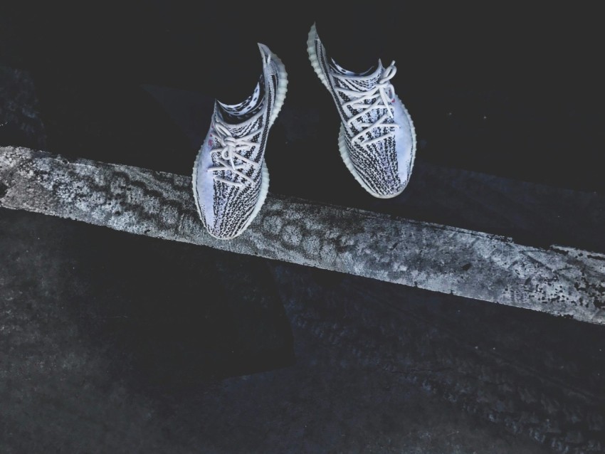 pair of gray and black adidas yeezy boost 350s gVgu