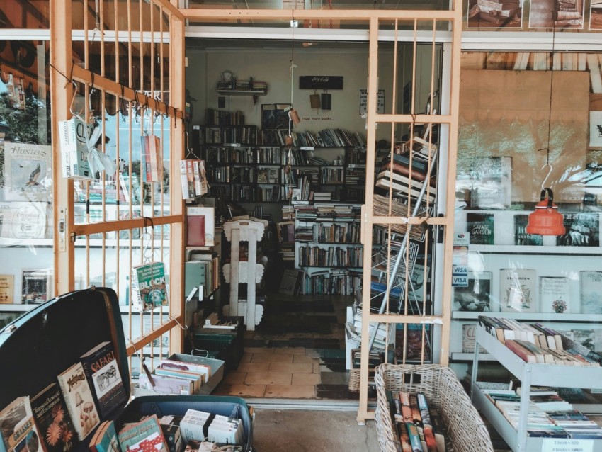 brown wooden shelf with books and books