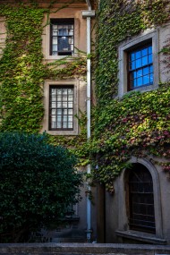 woman in black leather jacket standing beside black and white short coated dog during daytime