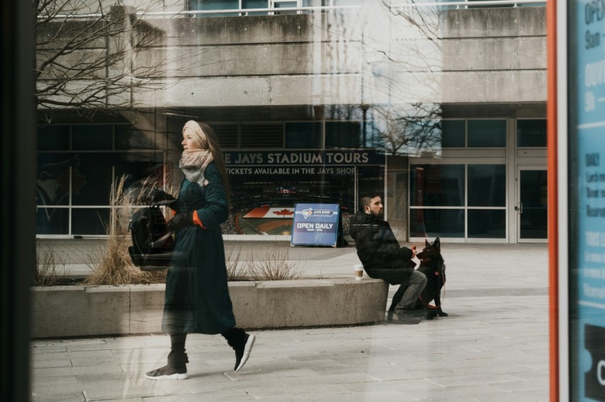man sitting on concrete block beside dog during daytime
