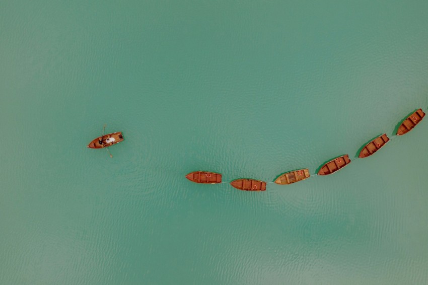 a group of boats floating on top of a body of water
