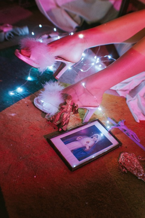a small rabbit sitting on a table next to a potted plant VvXP2G