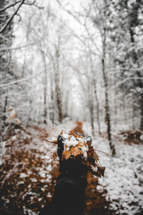 person in black jacket and black pants sitting on brown dried leaves during daytime