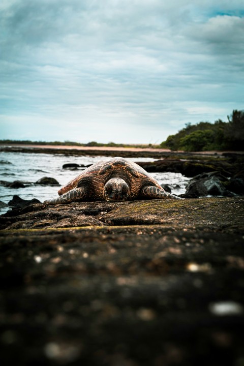 a rocky beach with a body of water