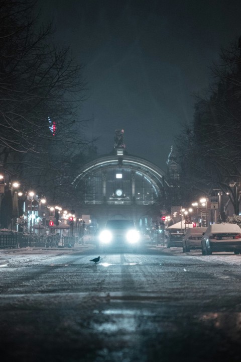 black and white concrete building during night time