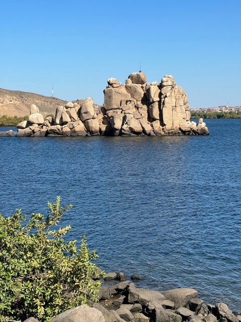 a large body of water surrounded by rocks w