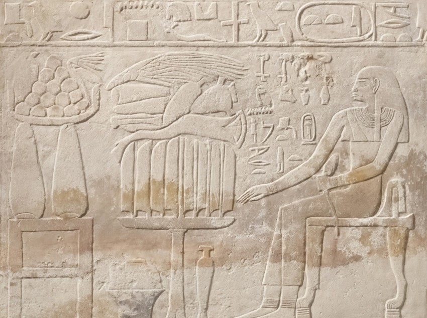 a drawing of a group of statues in the sand