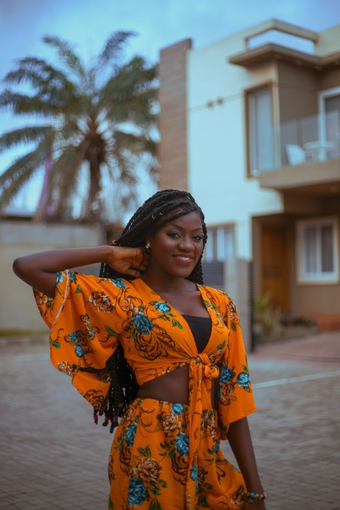 a woman standing in front of a building
