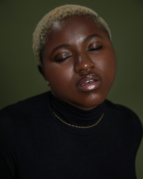 woman in green and red jacket carrying brown short coated dog 5DTCm