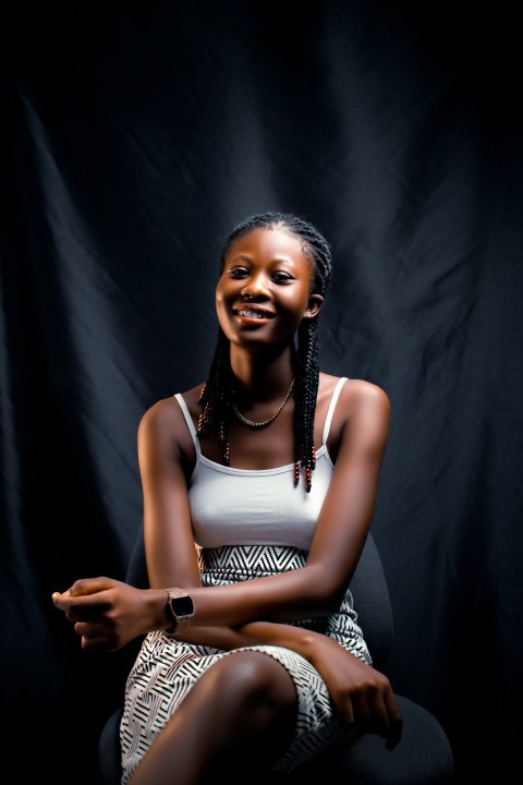 woman in black shirt sitting on white table using silver macbook