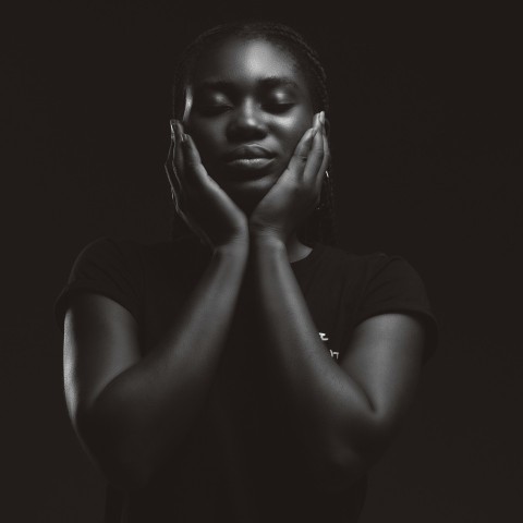 a person with the hand on the face