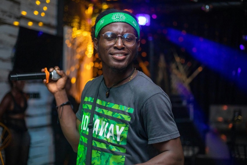 man in brown and white plaid dress shirt and yellow hard hat holding black and orange 0
