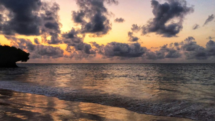 body of water under white sky at golden hour