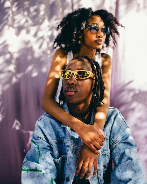 man in blue suit jacket and black sunglasses standing beside brown concrete wall