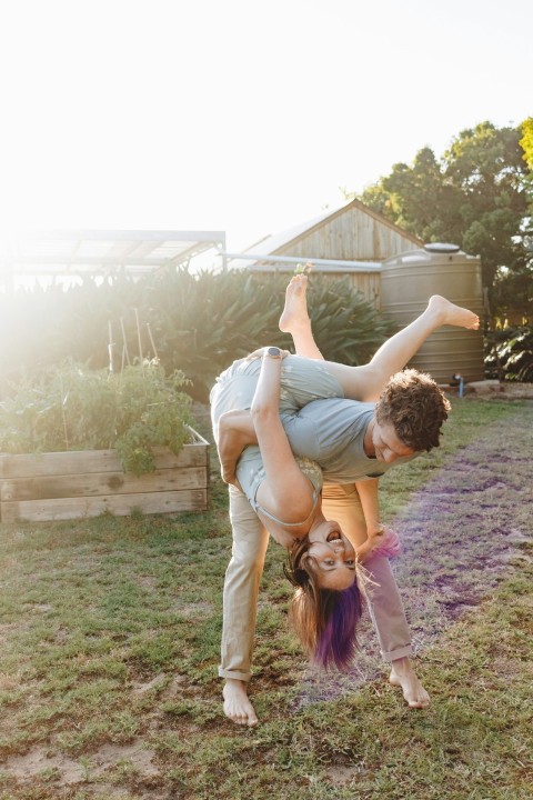 man in black tank top beside woman in blue denim jacket