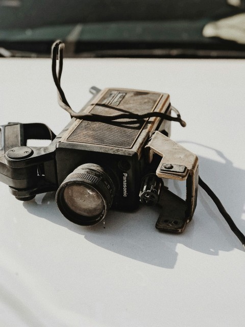 vintage black and gray panasonic camera on vehicle hood