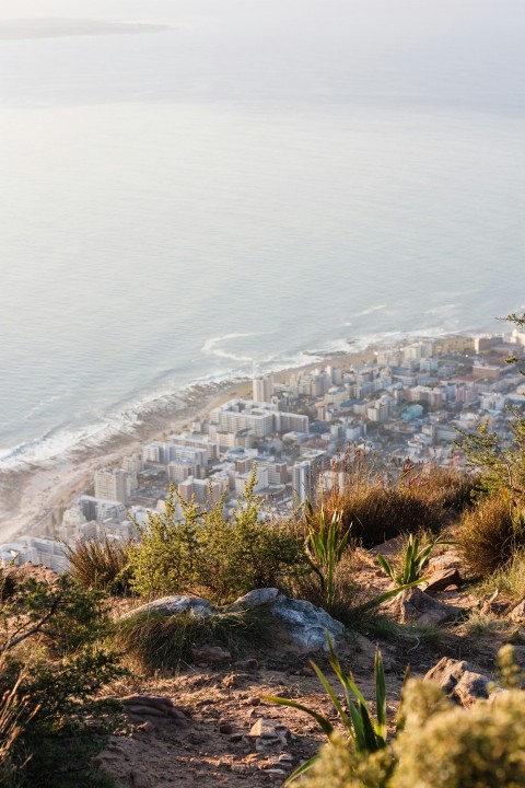 a brown and white dog standing on top of a rocky beach DcIGWiy