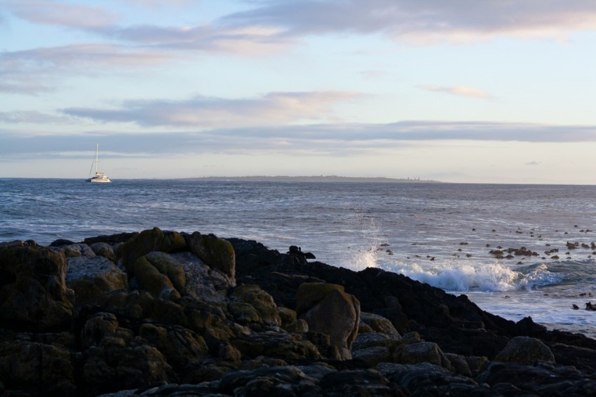 a boat is out in the ocean on a cloudy day