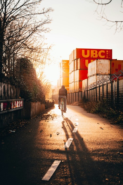 woman in black jacket walking on pathway near brown bare trees during daytime