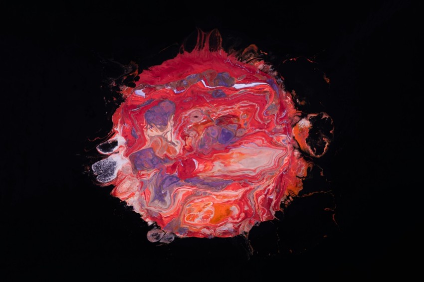 red blue and gray oil abstract painting