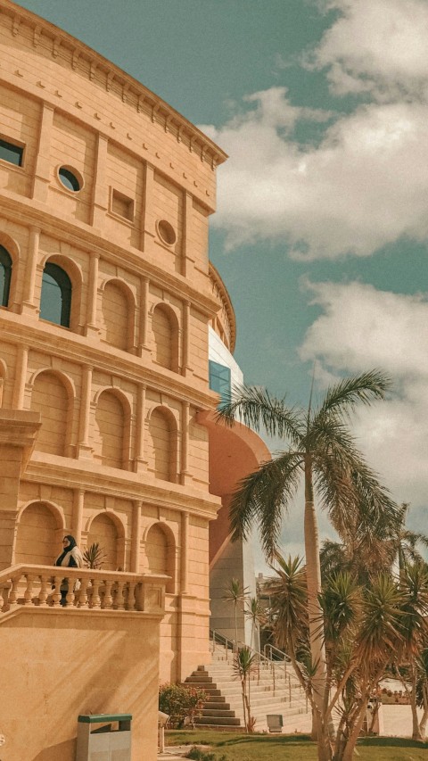 a man standing in front of a large building