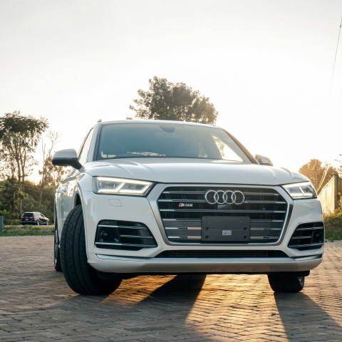 a couple of giraffe standing on top of a lush green field jSTpBE